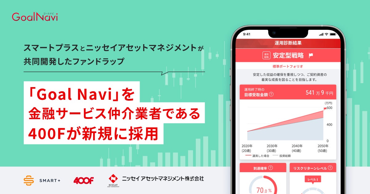 スマートプラスとニッセイアセットマネジメントが共同開発したファンドラップ「Goal Navi」を金融サービス仲介業者である400Fが新規に採用