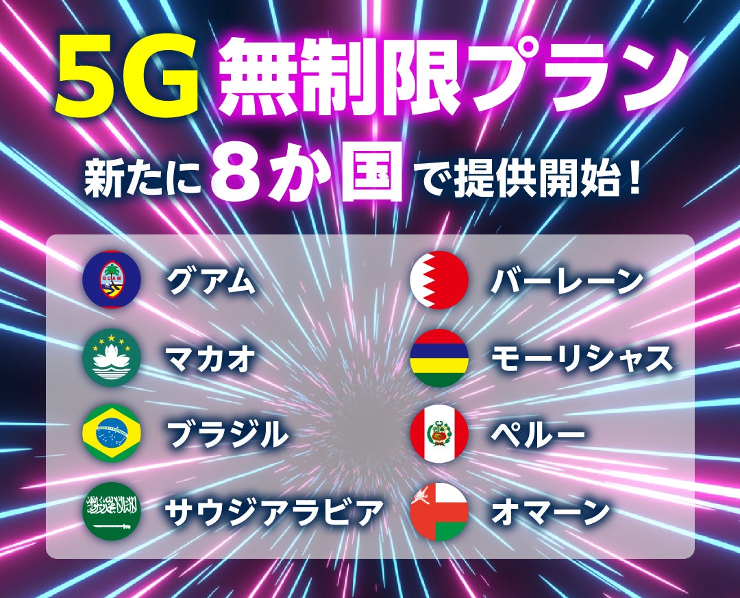 リーズナブルで高品質な海外用Wi-Fiルーターレンタルサービス「グローバルWiFi®」(https://townwifi.com/)を提供する株式会社ビジョン(本社:東京都新宿区 代表取締役社長 COO:大田健司、以下ビジョン)は、11月28日より新たに下記の8つの国と地域で超高速5Gプランの提供を開始しました。