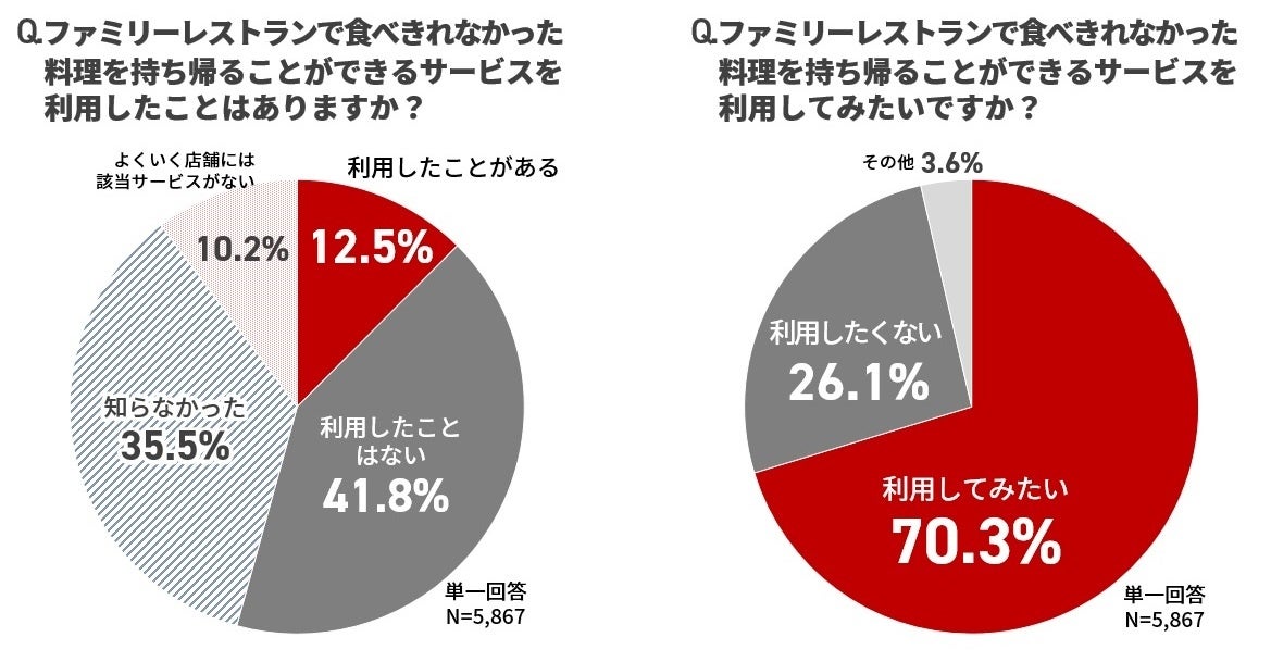 食べ残しやフードロス削減は社会的な課題であり、各社も様々な取り組みをおこなっています。料理の「持ち帰り」ができるサービスが多くの生活者に利用されるよう、業界全体での啓発活動が期待されます。