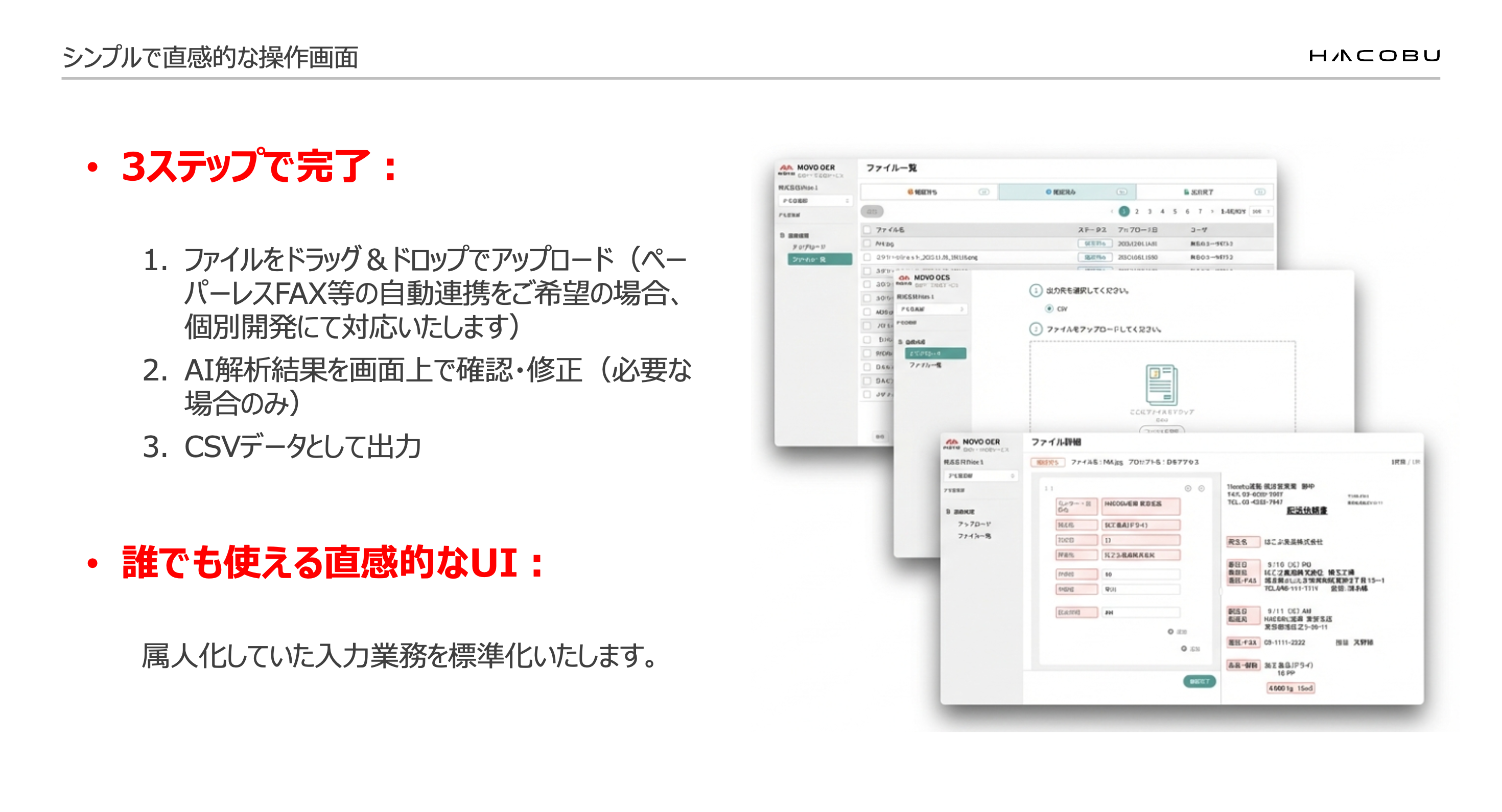 誰でも使える直感的なUIにより、これまで属人化していた入力業務を標準化します。