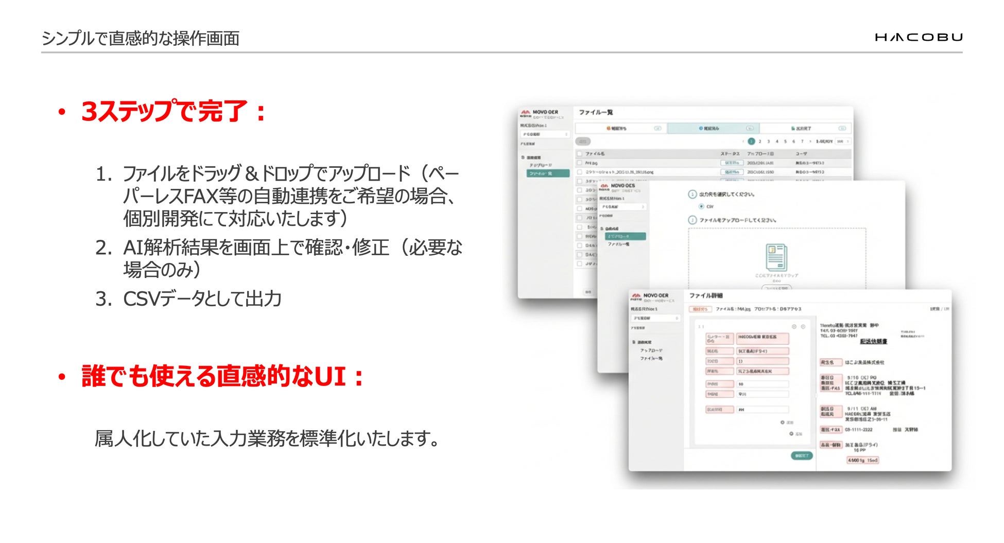 ど、MOVOシリーズに取り込むことができます。これにより、FAXを見ながらシステムに手入力する作