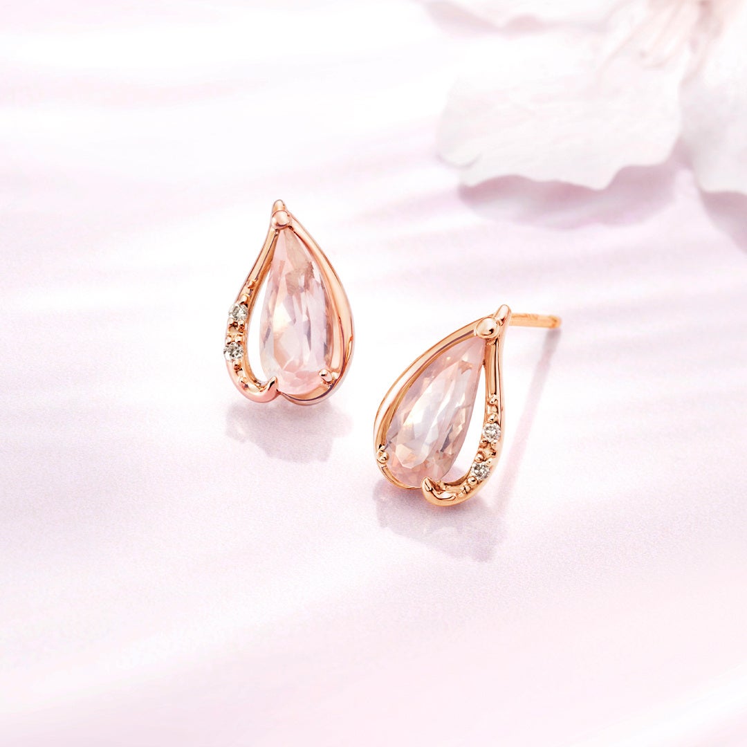 K10PG Pierced Earrings / Rose Quartz / Diamond ¥49,500