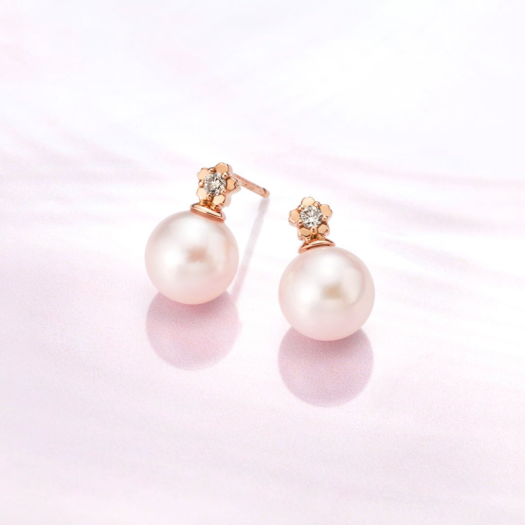 K18PG Pierced Earrings / Akoya Pearl / Diamond ¥59,400