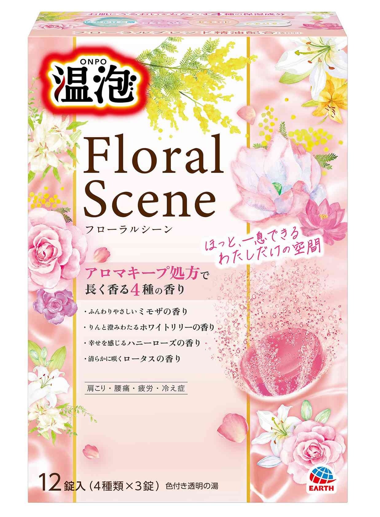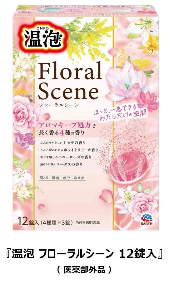 アース製薬から、お花の香りが溢れる、いやしのバスタイム!4種アソートの炭酸入浴剤『温泡(おんぽう)フローラルシーン』を発売!