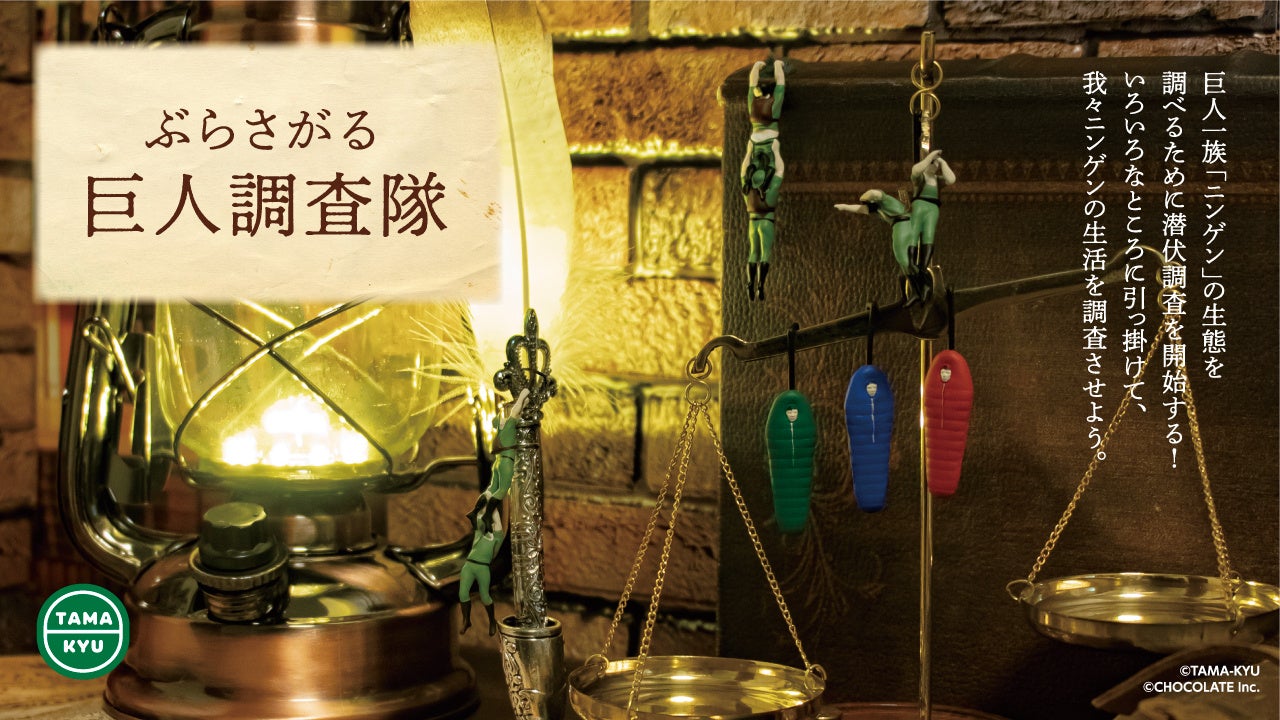 CHOCOLATE Inc.(本社:東京都渋谷区、代表取締役:渡辺裕介)が企画を手がけたカプセルトイ「ぶらさがる巨人調査隊」が、本日1月30日に株式会社ブシロードクリエイティブ(本社:東京都中野区、代表取締役社⻑:成⽥耕祐)のオリジナルカプセルトイブランド『TAMA-KYU(タマキュー)』より発売され、全国のカプセルトイ自販機にて順次販売が開始されます。本商品は、まるで自分自身が巨人一族となり、生態調査をされているかのような気分を味わうことのできるカプセルトイ商品です。「偵察する調査団員」「熟睡する調査団員」など個性の光る調査団員たちを身近な場所にぶら下げて調査させることができ、ラインアップは全6種類を揃えています。