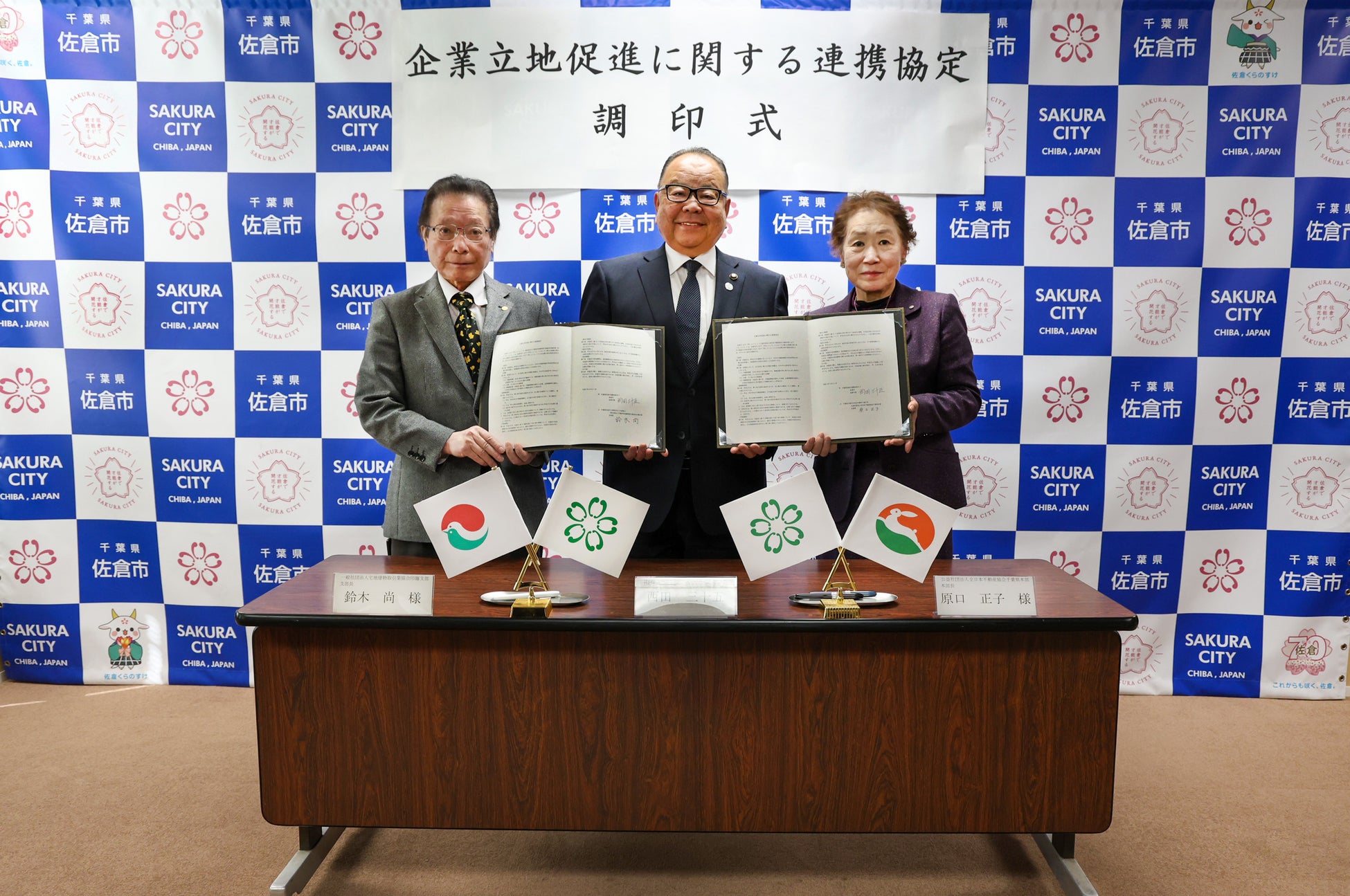 一般社団法人千葉県宅地建物取引業協会印旛支部様及び公益社団法人全日本不動産協会千葉県本部様におかれましては、長年にわたり、佐倉市内の不動産業をご支援いただいております。今日における佐倉市の不動産業界の発展は、両協会の皆様のご尽力があってのことと認識しております。