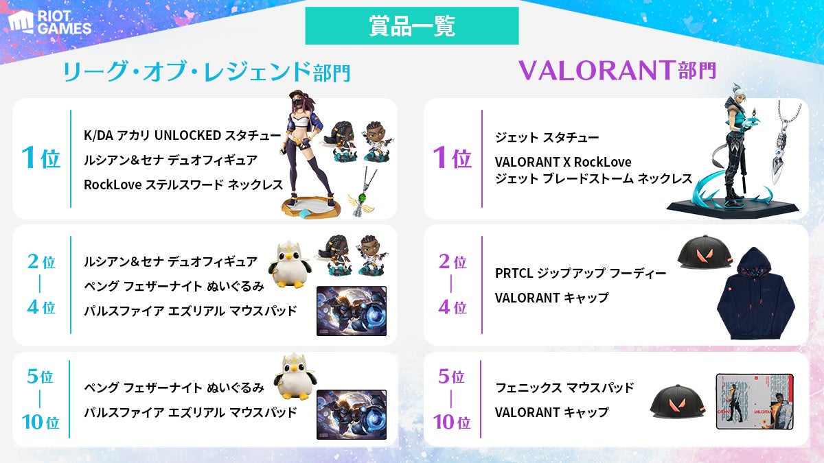 賞品 :リーグ・オブ・レジェンド部門公式グッズ・VALORANT部門公式グッズ