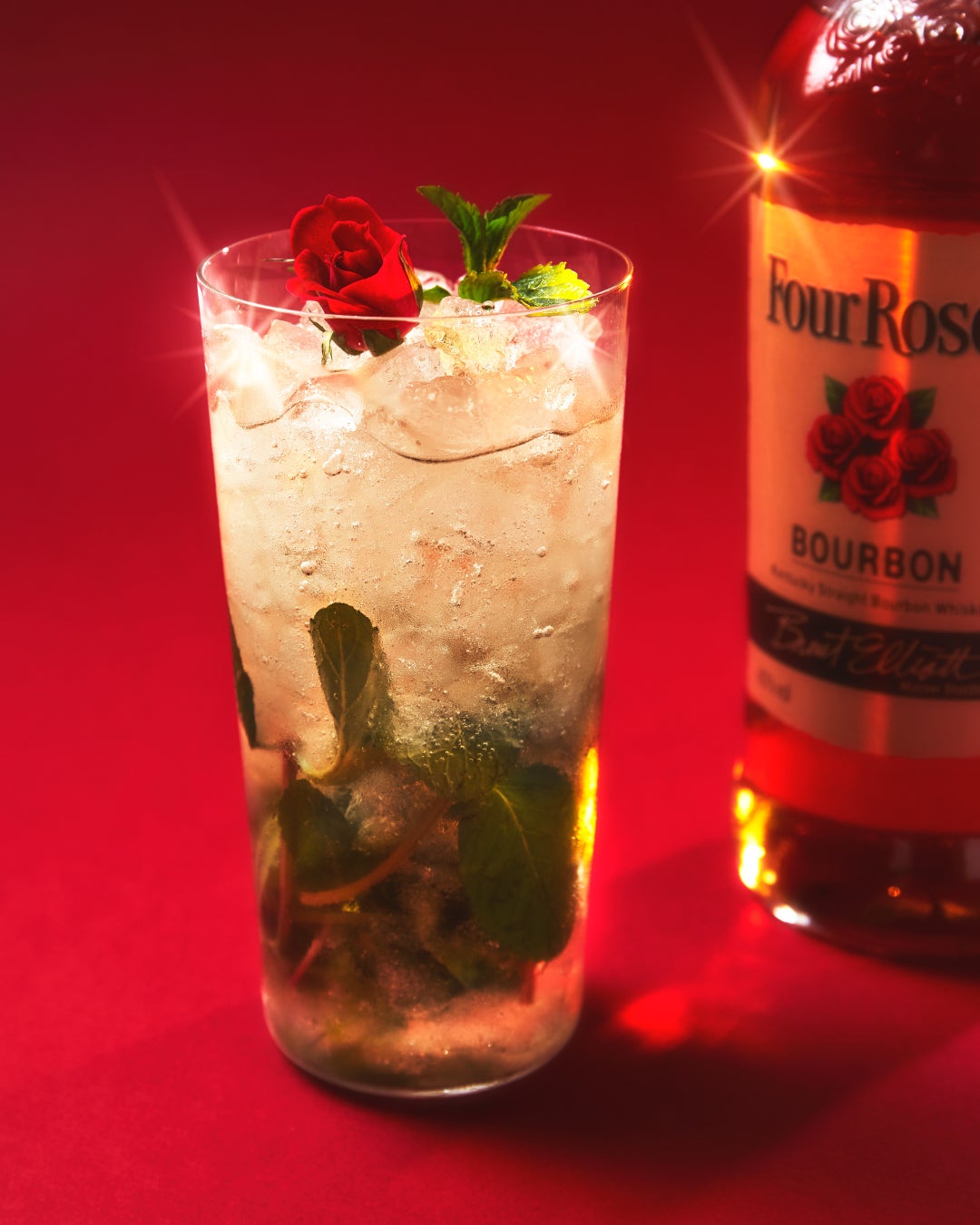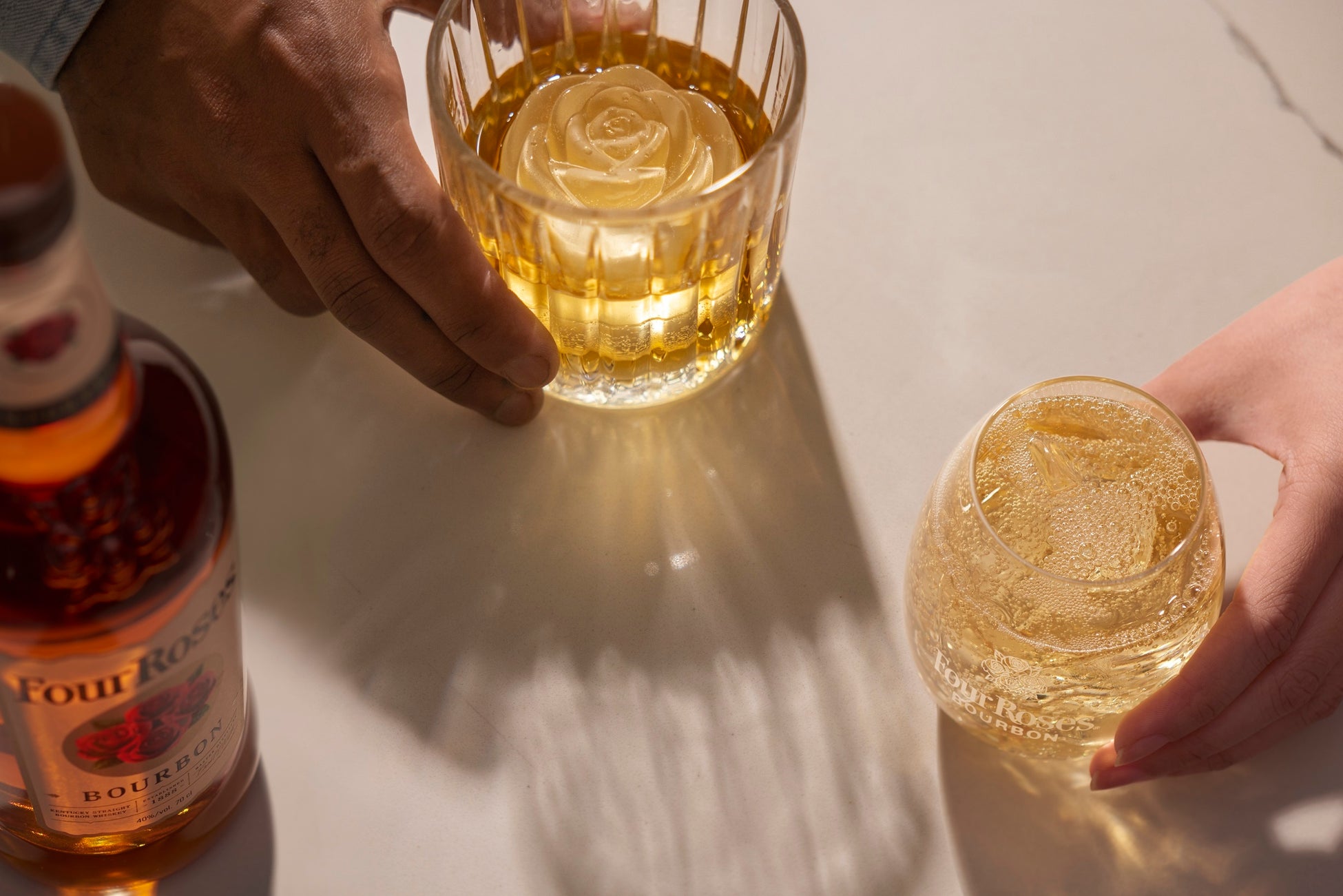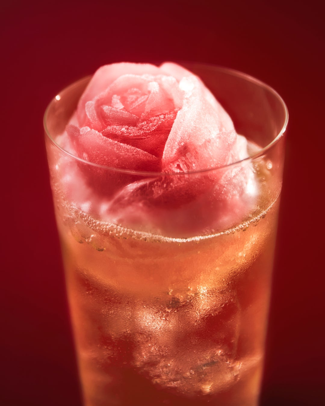 1杯のグラスに水、氷を加えることでブーケのように花開き、様々な変化が生まれる「フォアローゼズ」からインスパイアされたオリジナルカクテルとスイーツをご用意します。またフォアローゼズのロゴでもある愛が結実した瞬間を象徴した4輪の薔薇にみたてた氷と共に、まろやかな味わいと華やかな香りを味わうハイボールをバルニバービグループの店舗にてご提供いたします。(※一部店舗は提供しておりません)