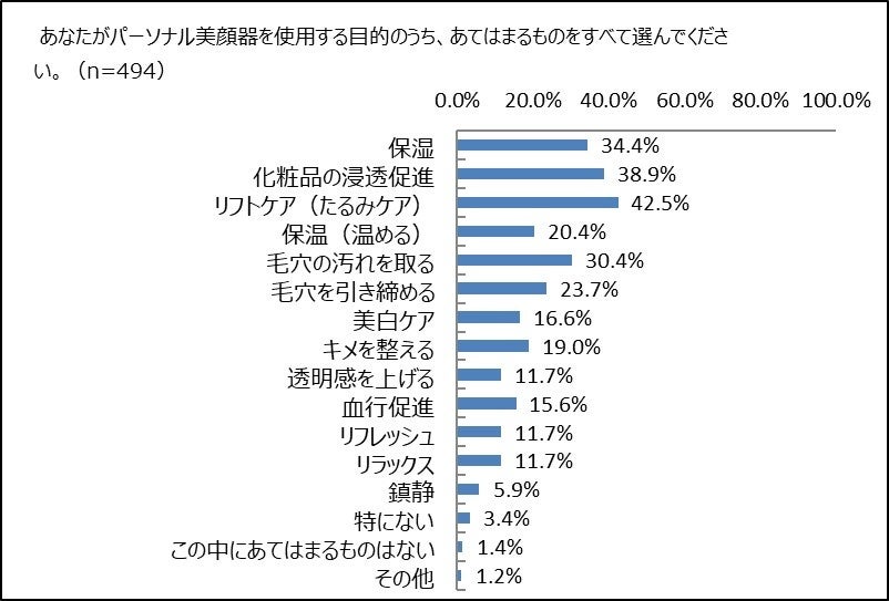パーソナル美顔器の使用目的、1位は「リフトケア」
