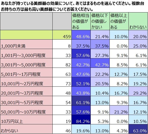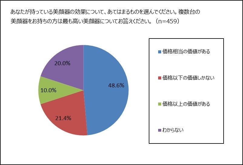 5万円以上の美顔器、「価格以上の価値」2割超。「価格相当」と合わせると約8割。