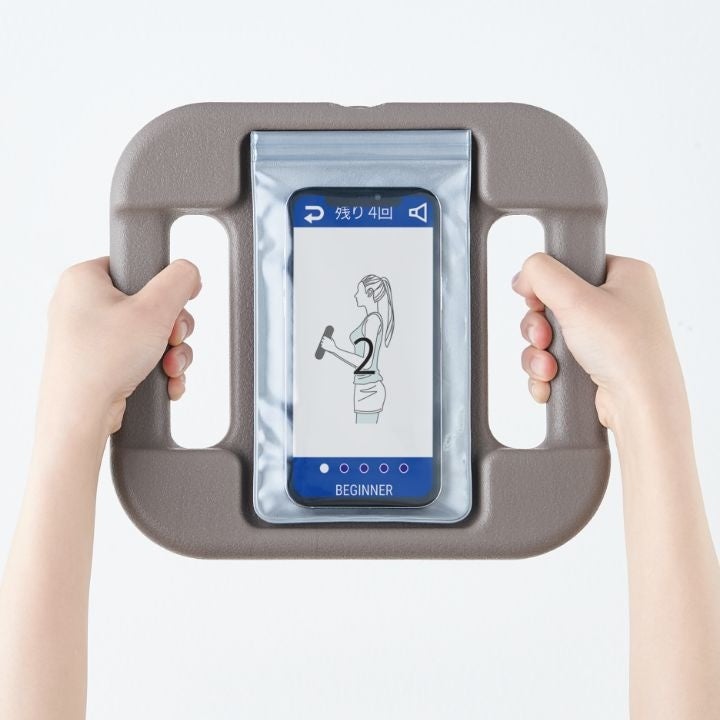 - ダンベルに装着できるスマートフォンケース付き!