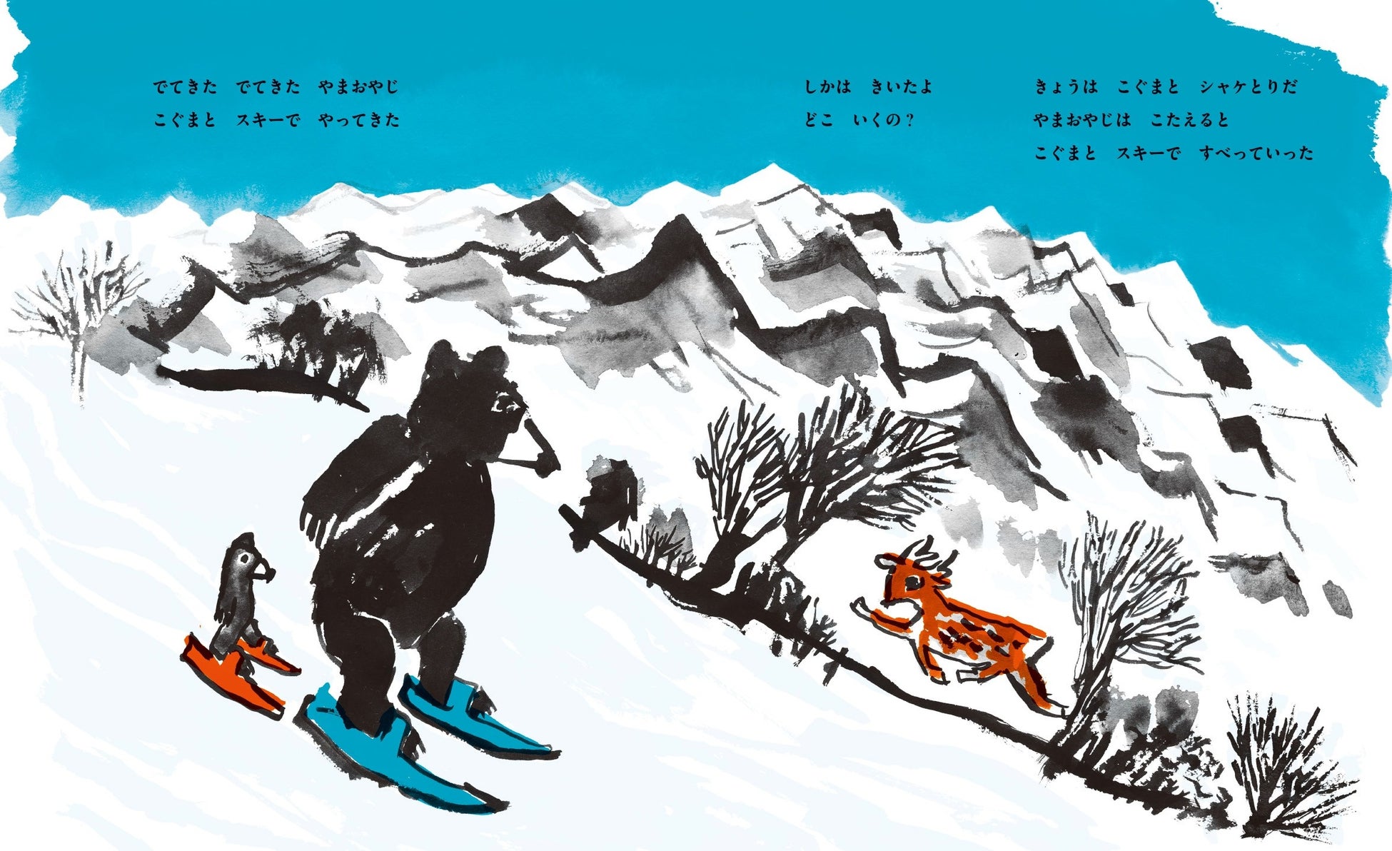 北海道の雪山に暮らすくまの親子。お父さんぐまの「やまおやじ」とこぐまは、スキーにのって、川へシャケとりに出かけます。「友だちにあげるんだ」とはりきるこぐま。無事にシャケをとることができるのでしょうか……
