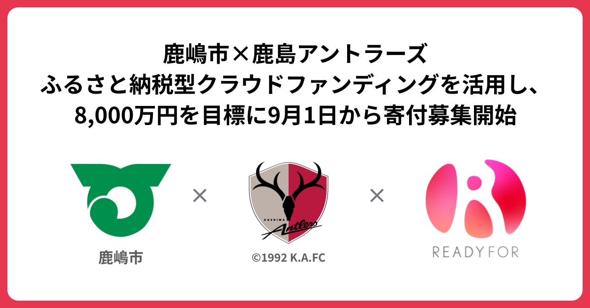 「READYFOR」にて、鹿嶋市×鹿島アントラーズが、8,000万円を目標にふるさと納税型クラウドファンディングを9月1日から開始!