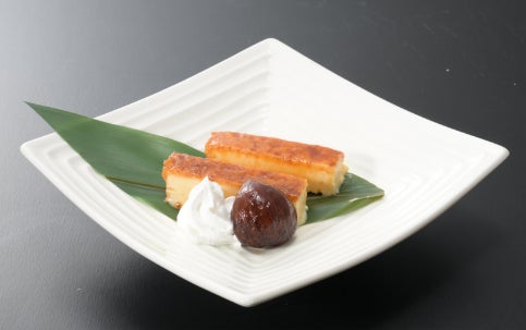 栗本来の上品な甘みと香りを楽しめる渋皮栗と、北海道・花畑牧場が誇る「十勝カタラーナ」を組み合わせた一皿。