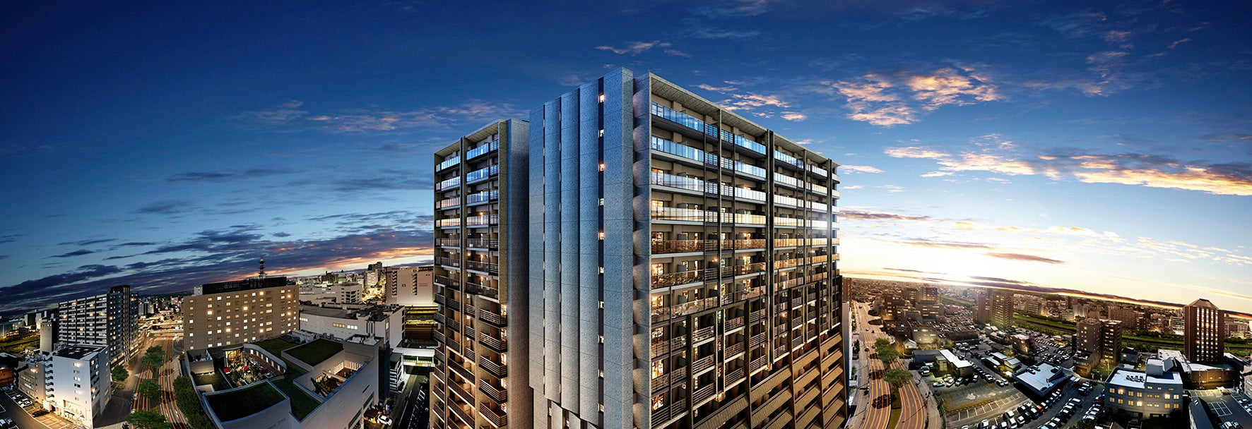 歴史、文化、アート、そして水や緑。日本の伝統を意識しながら「水戸らしさ」に相応しい存在感を。水戸に流れる多面的な要素を、光と影というファクターで捉えたデザインレジデンス。駅からの一体感を意識し、都市的で立体感のあるデザインを施しました。