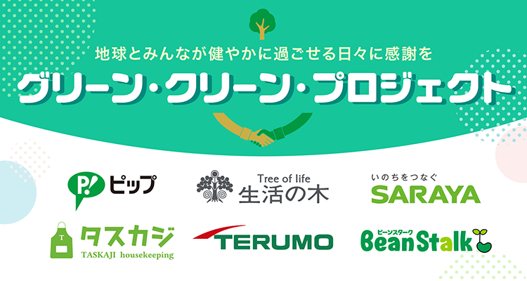 4月22日(月)~5月4日(土)までの期間、ピップ(株)・(株)生活の木は合同で、サラヤ(株)、(株)タスカジは各公式SNSにて、プレゼントキャンペーンを随時実施中です。人にも地球にも優しい自然派素材にこだわり抜いた商品が当たったり、ご自身がしているエコ家事の募集など、グリーン・クリーン・プロジェクト期間限定のキャンペーンとなっています。各キャンペーンの詳細は、特設サイトまたは各社公式SNSをご覧ください。