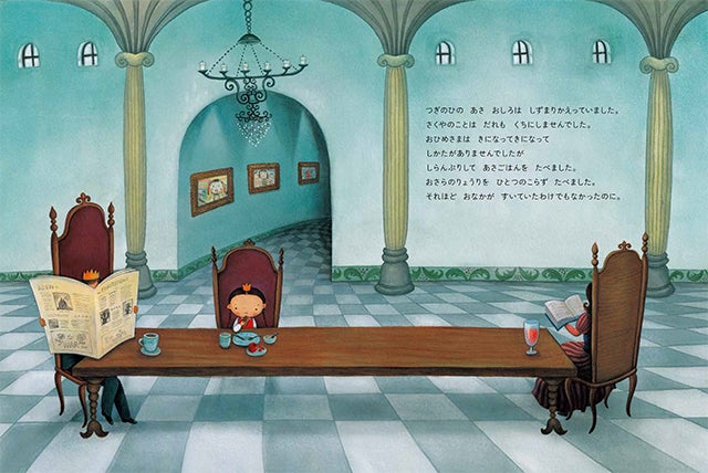 おひめさまは何がおきたのか気になってしかたありませんでしたが、しらんぷりして朝ごはんを食べました。