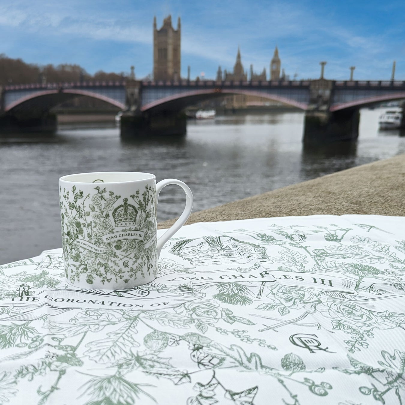 ●『ヴィクトリアエッグス』チャールズ3世戴冠記念 マグ&ティータオルセット(マグ:ファインボーンチャイナ/340ml、ティータオル:綿100%/W48×H76cm)11,000 円【限定20点】