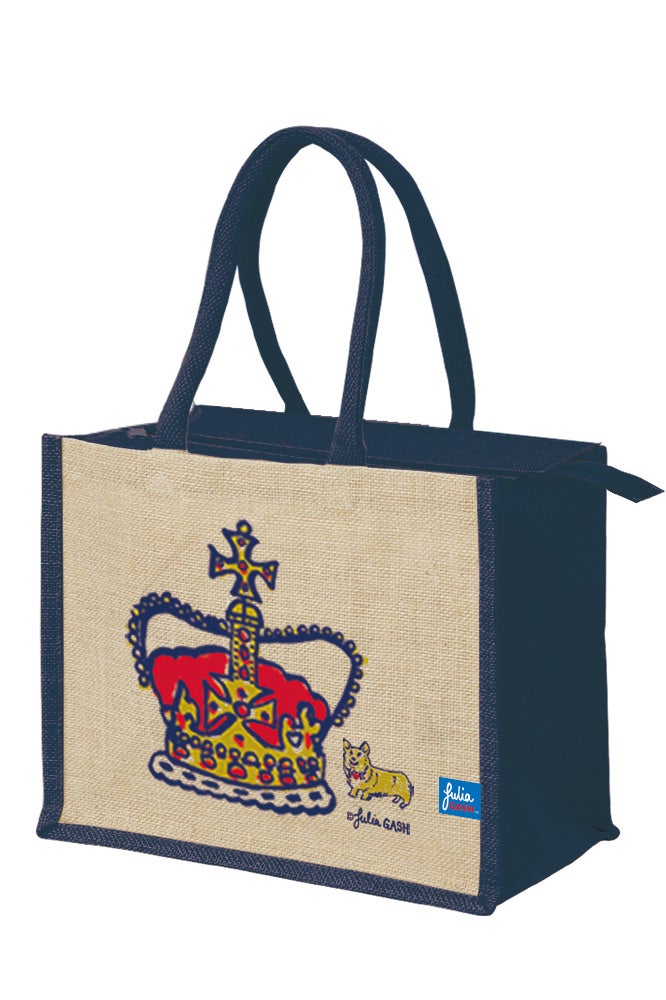 女王陛下の愛犬と王冠をデザインしたジュートバッグです。