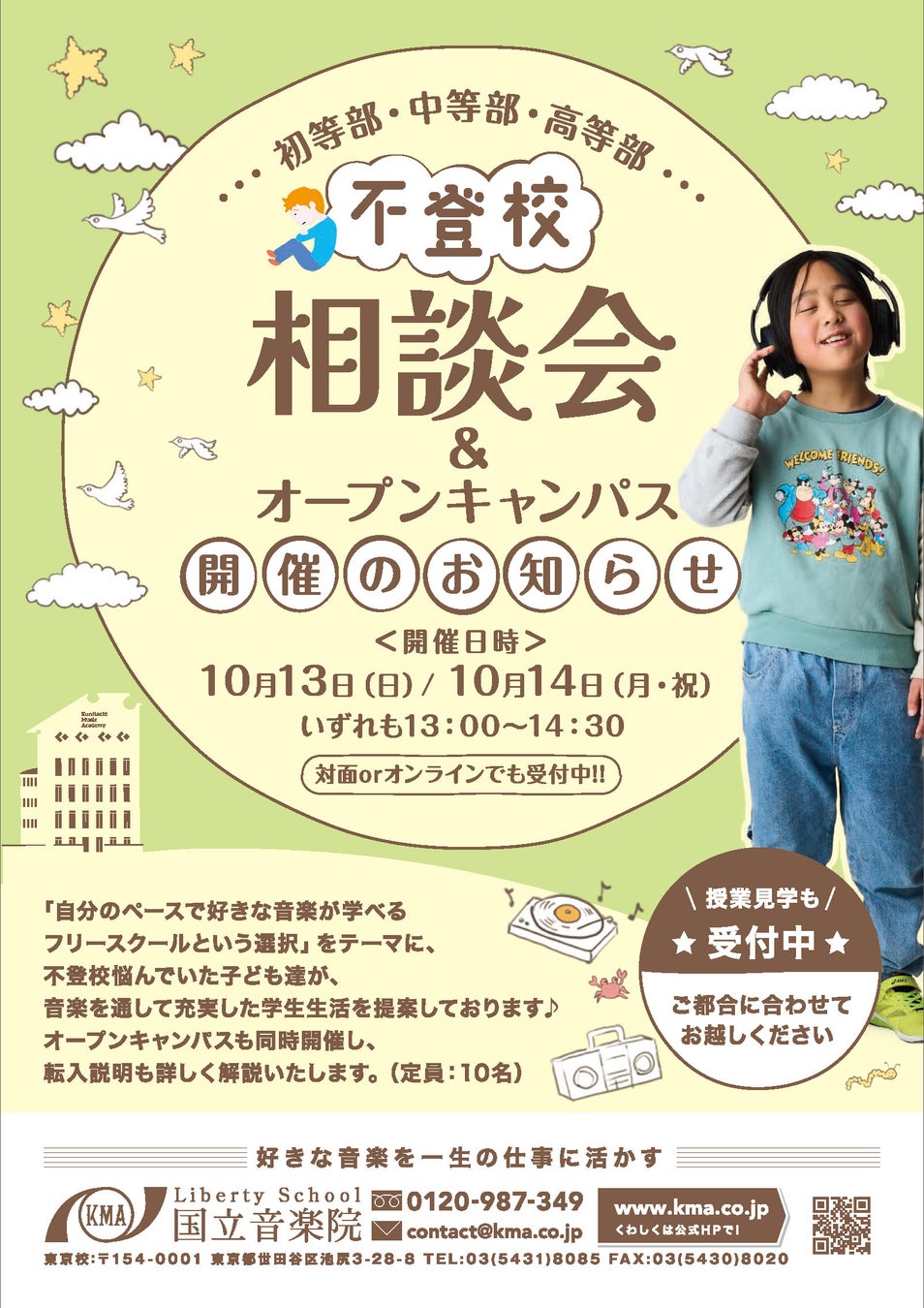 【不登校でも孤立しない社会を】国立音楽院「不登校相談会&オープンキャンパス」開催のお知らせ