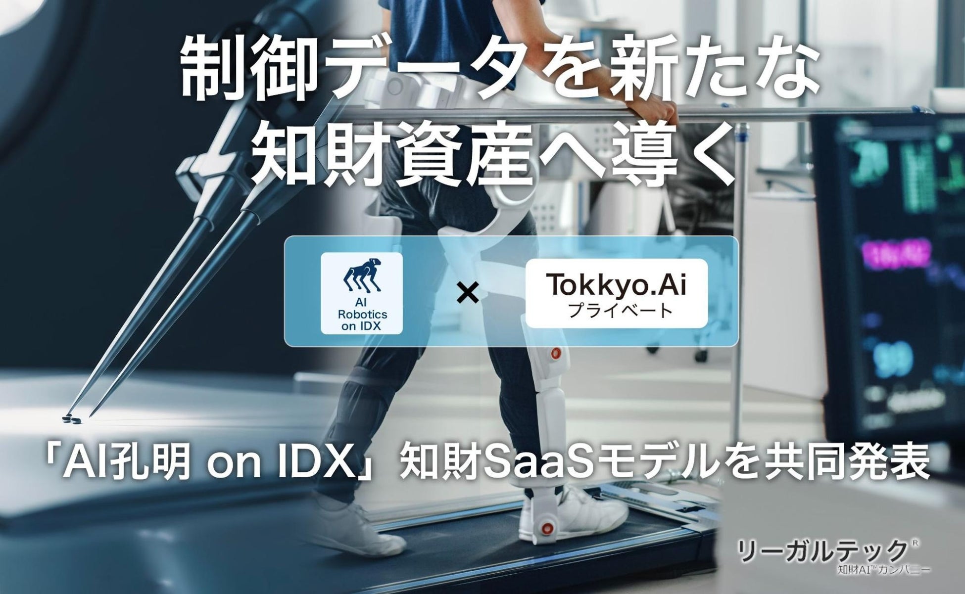 リーガルテック株式会社(東京都港区:代表取締役 平井 智之)およびAIデータ株式会社(東京都港区:代表取締役 佐々木 隆仁)は、ロボット産業向け知的財産マネジメントとAI活用を統合した「AI孔明 on IDX」知財SaaSモデルを共同で発表する。