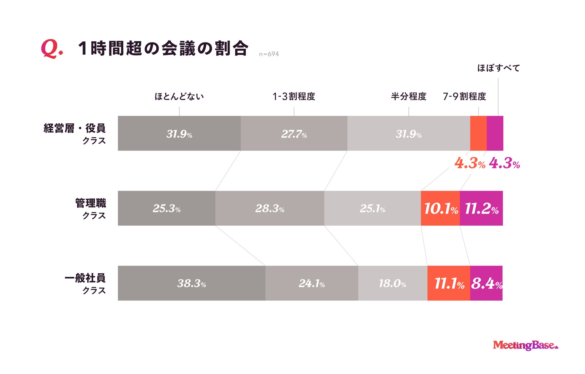 ◾️1時間超の社内会議の比較:管理職クラスの会議は比較的長いという結果に