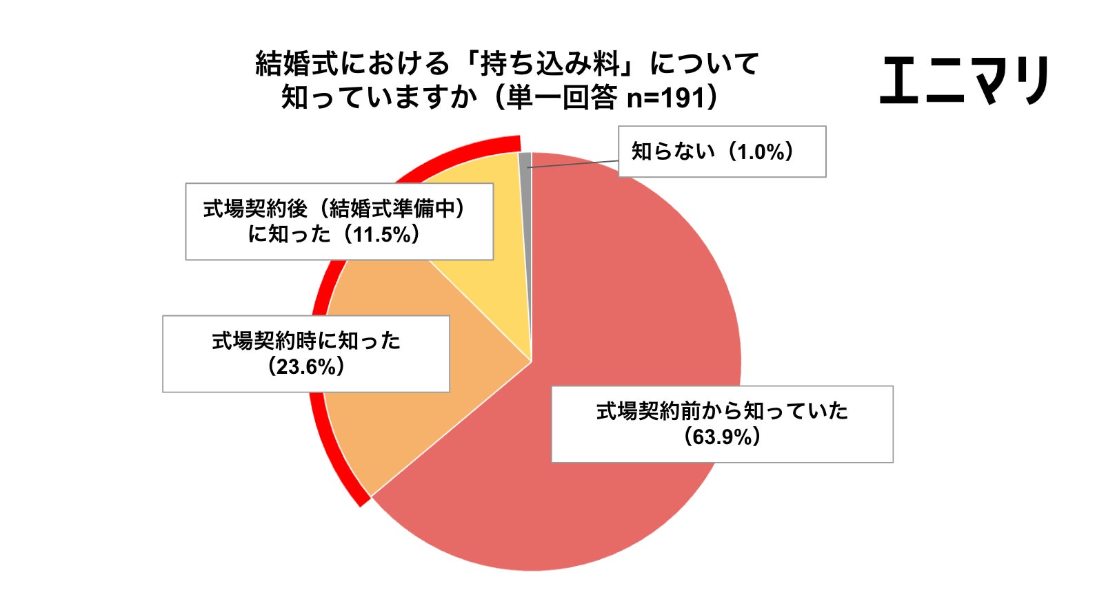 「持ち込み料」を契約時や準備中に初めて認識したカップルが3割以上