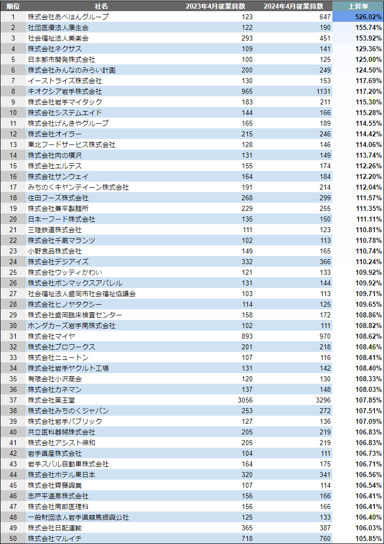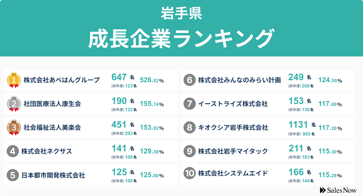 【岩手県】成長企業ランキングTOP50!/SalesNow DBレポート