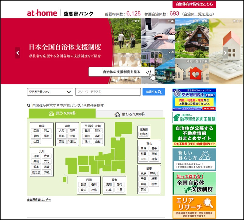 国土交通省が推進している空き家・空き地等の流通活性化に向けた取組みに賛同し、全国の空き家・空き地や公的不動産(PRE)、地域の情報と消費者ニーズを結びつけることを目的に「アットホーム 空き家バンク」を構築・運営しています。アットホームは、空き家・空き地の利活用に関心を持つ消費者に、引き続き有益な情報を提供してまいります。