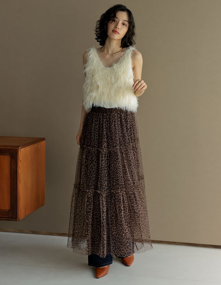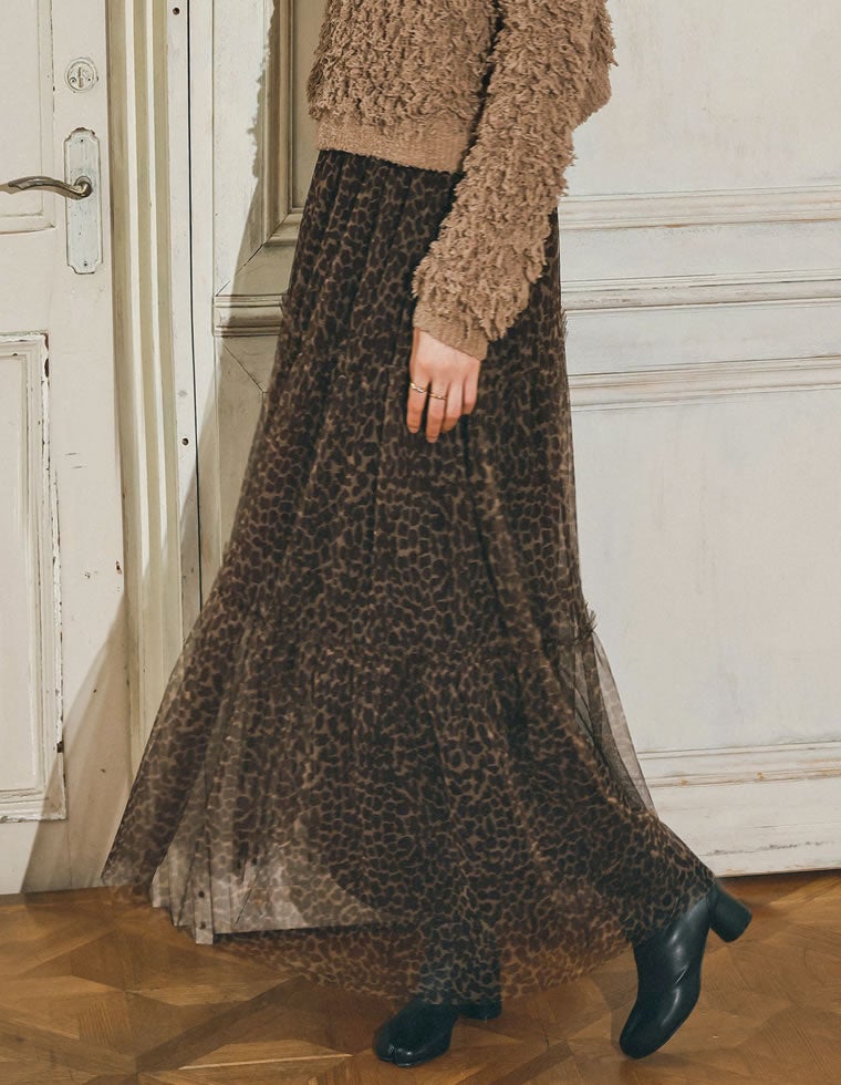 【Re:EDIT(リエディ)】2024年の秋スタイルを先取りできるチュールボリュームスカートに新色「レオパード・チェック柄」が加わり発売。