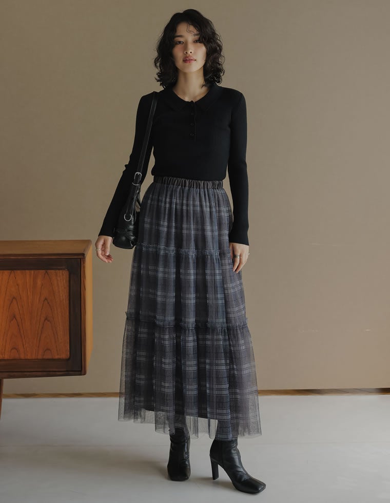 シアー感がモードな印象に仕上げる、チュール素材のティアードスカートとペチコートの2点セット。