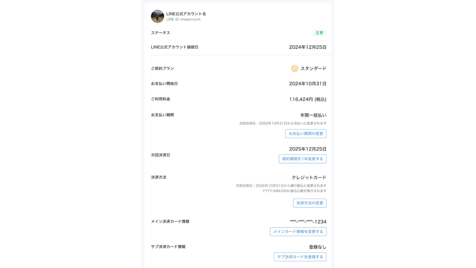 アカウントごとの契約詳細ページも新しいデザインへと変更しました。現在の利用プランや次回決済日などの重要な情報を整理し、視認性を高めています。