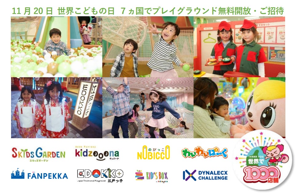 「世界こどもの日」に全国のプレイグラウンド210施設を無料開放 海外6カ国でも7000名分超のご招待・無料券プレゼント等を実施