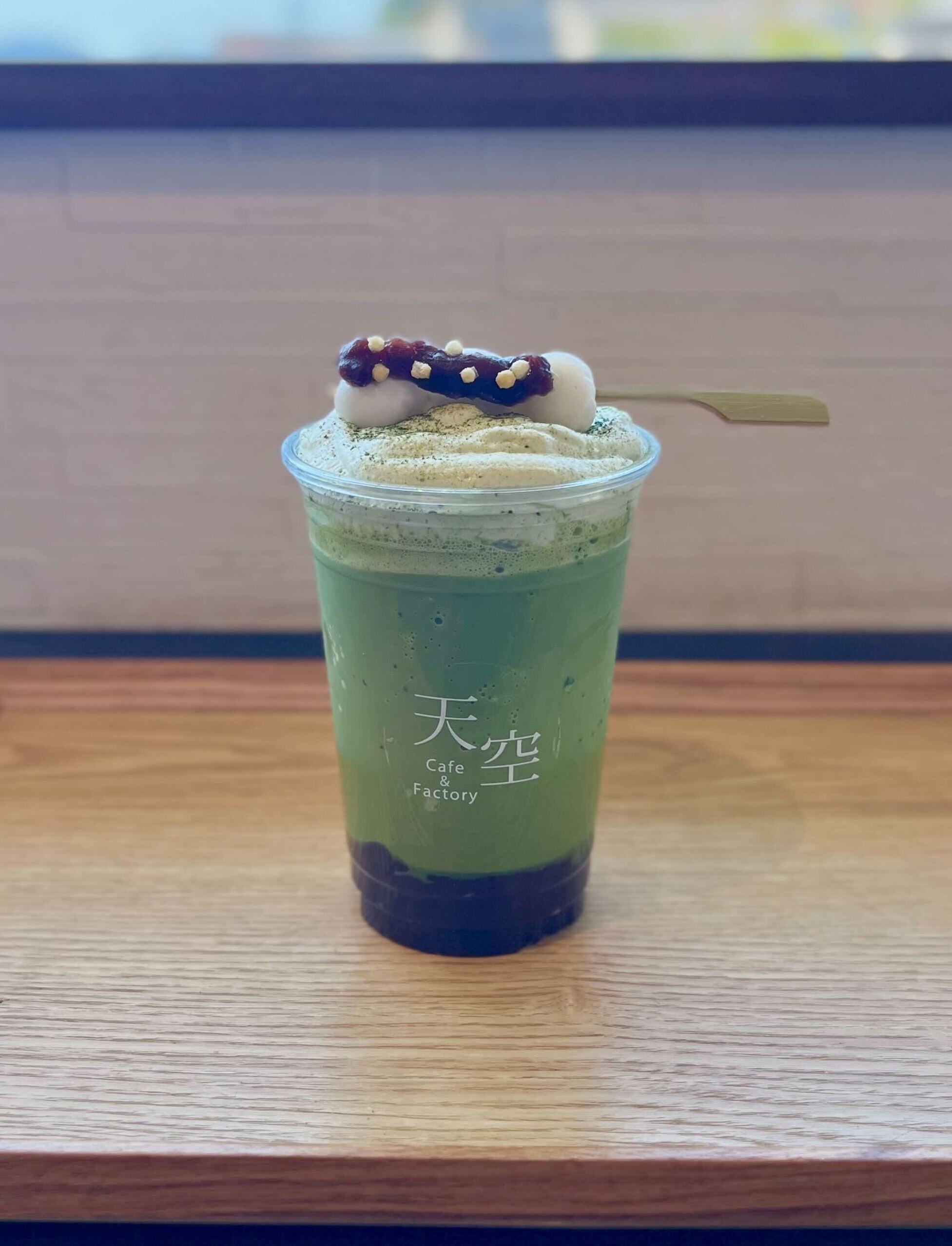 ふんわりとしてなめらかなくちどけの抹茶風味のホイップクリームを乗せたフローズンラテです。まるで雲のような、ふわふわでとろとろの舌触りが新しい限定ドリンクメニューです。ドリンクの底に入れたあんこと一緒に混ぜてお召し上がりください。