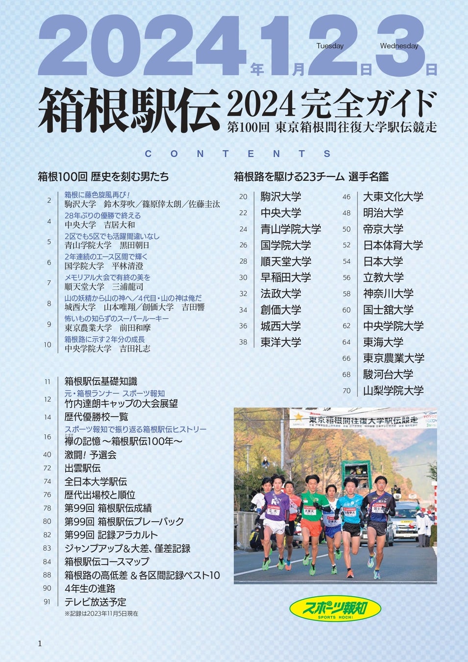 第100回を記念した増枠分を含めた全23チームの顔写真付き選手名鑑、戦力分析をメインに、史上初の2年連続学生3大駅伝3冠へと爆走する駒大の鈴木芽吹&篠原倖太朗、佐藤圭汰の3本柱、28年ぶりのVへ意欲いっぱいの中大・吉居大和、青学大逆転優勝へのキーマン・黒田朝日、4代目・山の神候補の城西大・山本唯翔、創価大・吉田響、東農大に10年ぶりの箱根切符をもたらしたスーパールーキー・前田和摩の各選手をはじめメモリアル大会を彩りそうな注目株をピックアップ! 東洋大時代に箱根駅伝に出場した、スポーツ報知・竹内達朗記者がズバリと切り込む大会展望も必読です。