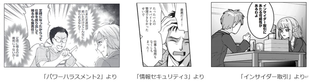 導入コンテンツ:「パワーハラスメント2」、「情報セキュリティ3」、「インサイダー取引」
