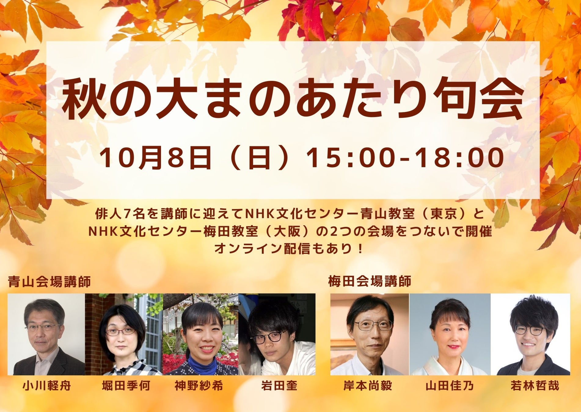 【NHKカルチャー】東京と大阪の2会場に人気俳人が勢ぞろい!俳句イベント「秋の大まのあたり句会」10/8(日)開催