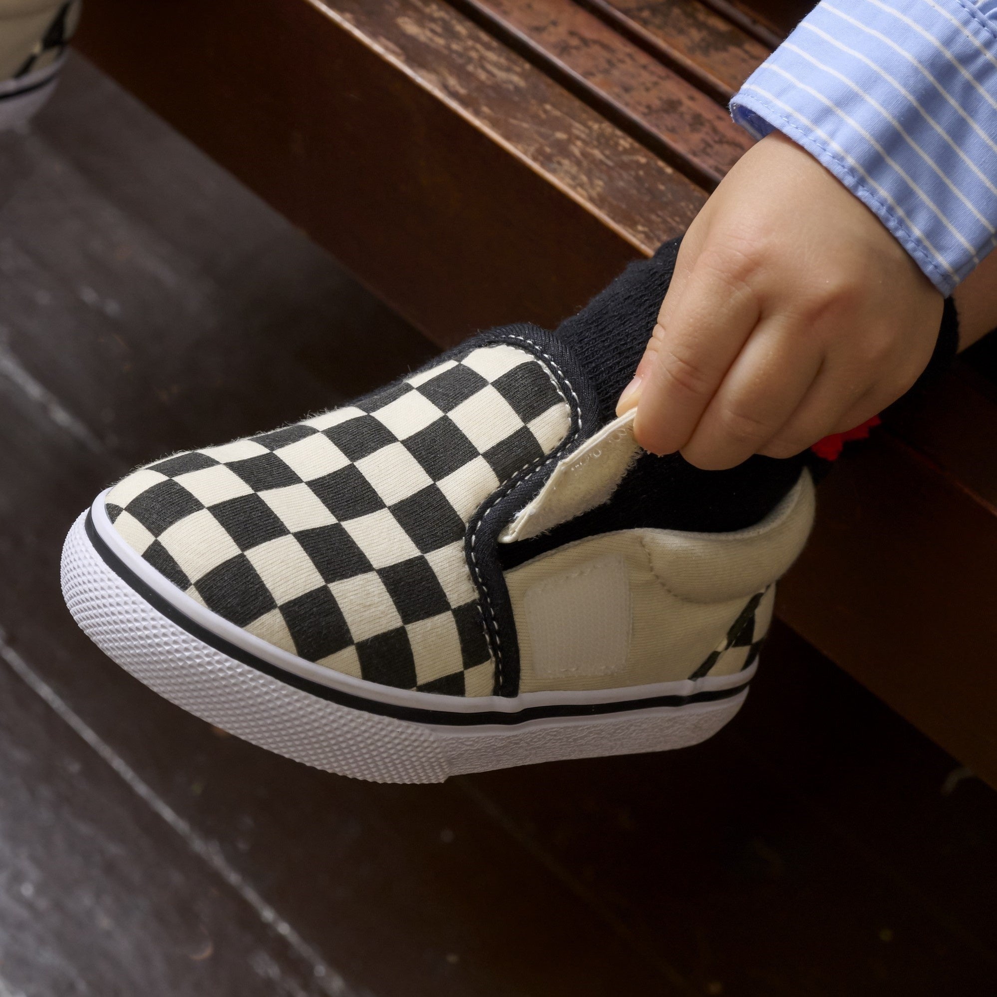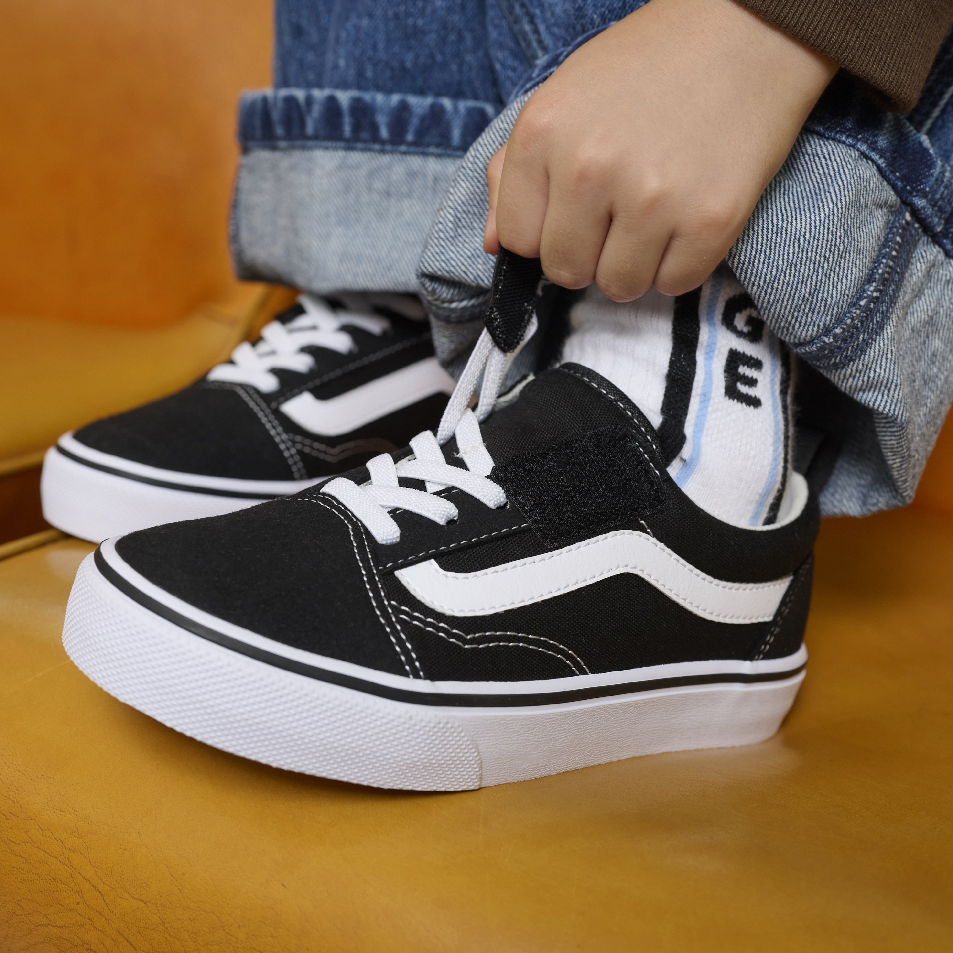 その中でも、クラシックなデザインで安定した人気を誇るラインナップの「Classic Series」は、大人向けと同様のデザインを採用しつつ、今秋の新作シリーズでは、手の小さなキッズひとりでも自分の力だけで簡単に脱ぎ履きができる仕様にアップデートされています。履き口にベルトストラップを採用することで、脱ぎ履きのしやすさを向上。さらに、柔らかいソールやゴム製のシューレースなど、VANSのいつものシルエットはそのままに、キッズに優しい機能を多数搭載しています。