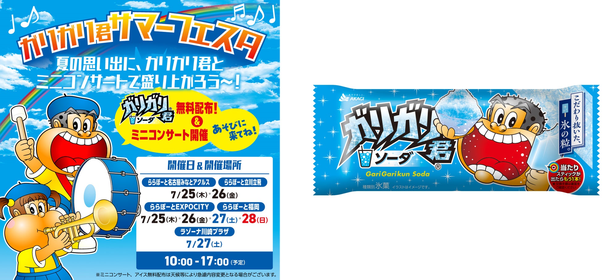 ~7月25日から7月28日までの4日間、ららぽーと5施設で「ガリガリ君のうた」ミニコンサートと「ガリガリ君ソーダ」合計14万本無料配布予定~