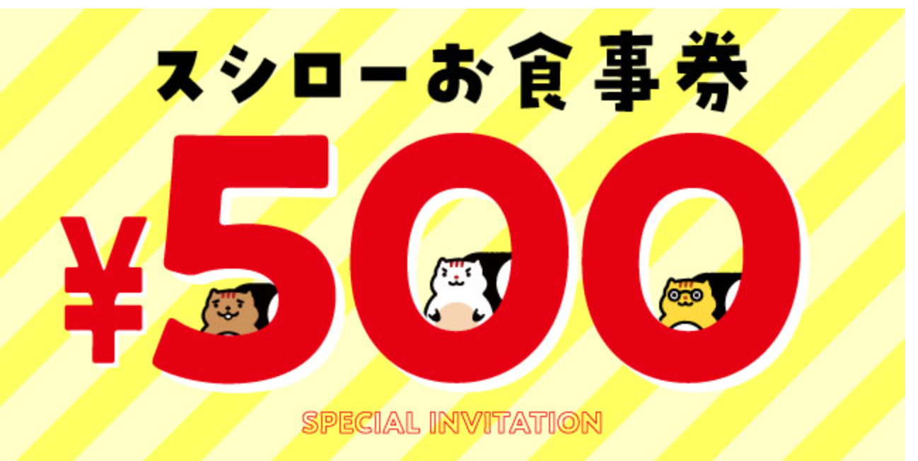 券種・価格(非課税):「スシローお食事券」200円、500円、1,000円、2,000円、3,000円