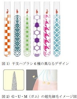 6年目を迎える今年は、2023年の干支であり穏やかで温厚な性質から「家内安全」、飛び跳ねる姿から「飛躍」「向上」を象徴する“卯(うさぎ)”をモチーフにしました。また、海の向こうから舟に乗ってやってきた青い霧(病)を、うさぎのカムイ(神)が追い払ったという北海道南西部の白老町(しらおいちょう)に伝わるお話「イセポ テレケ」をもとにデザインしました。ハブラシのハンドルは卯のモチーフと日本の伝統文様が描かれており、サンスターの特許技術*で両面それぞれの伝統文様がよりくっきり見えるように工夫しております。それぞれ色の違う6本のハブラシを2 本一組として、可愛らしい卯をあしらった、赤、金の高級感ある箱に入れてお届けします。