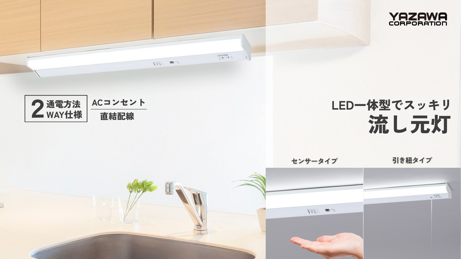 インテリア家電製品および、PCサプライ品の製造販売を手掛ける株式会社ヤザワコーポレーションは、LED流し元灯を発売いたしました。