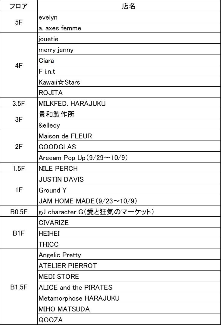 ku、HABA LABO 表参道、OH MY CAFÉ TOKYO、キディランド原宿店、ヴァンドーム青山 本店、
