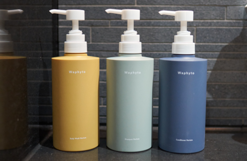 本施設では、アメニティもこだわりをもって選定しています。シャンプー、コンディショナー、ボディソープは「Waphyto(ワフィト)」を採用。「Waphyto」はフィトテラピー(植物療法)の考え方をもとに、肌や髪、身体への確かな効果を追求しながら、天然由来・植物由来の原料を可能な限り採用し、容器や販促物すべてにおいて、環境負荷の少ない選択をしています。