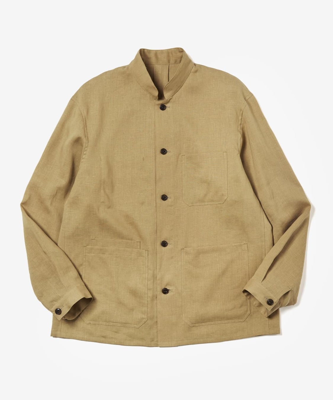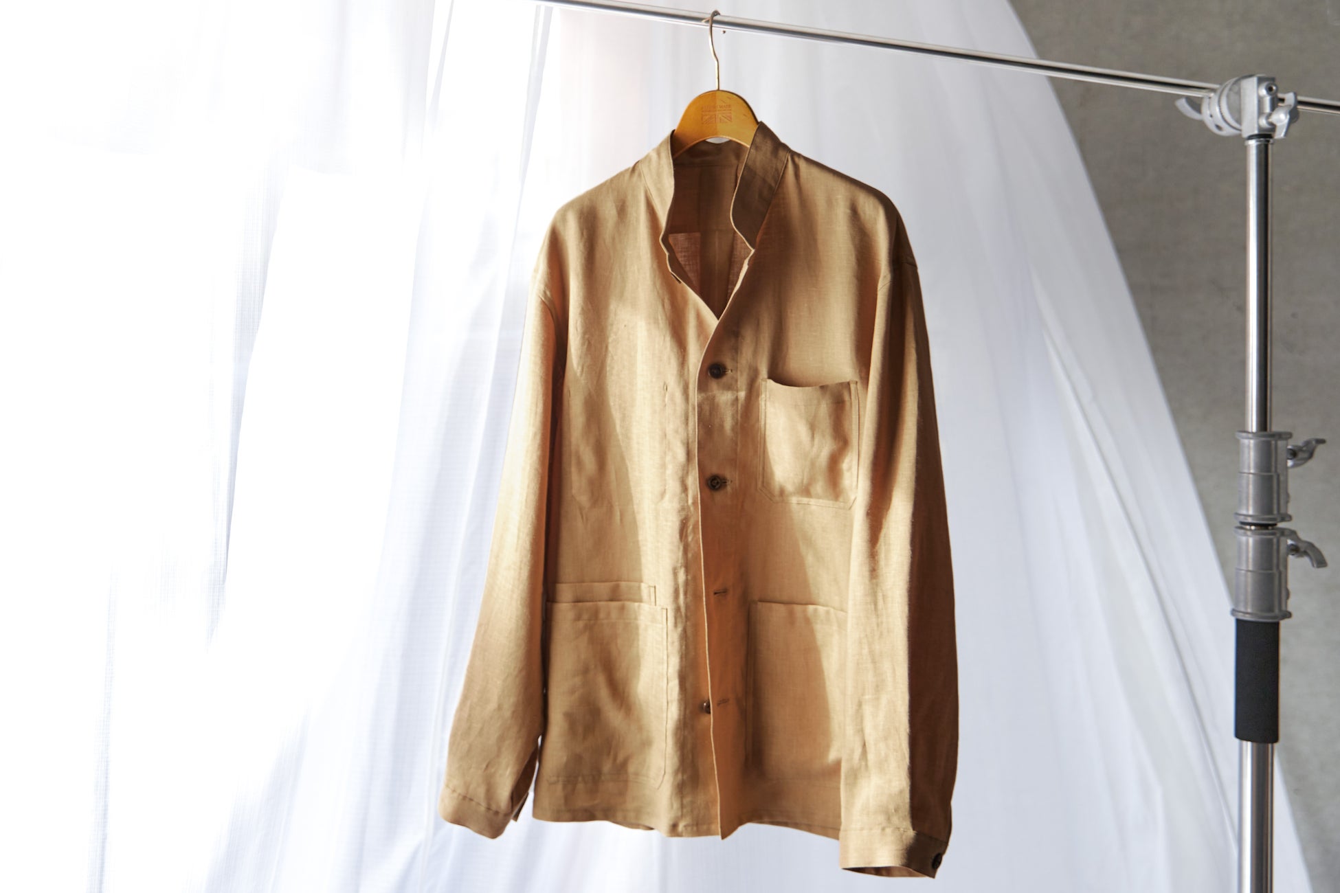 清涼感と、美しいドレープを持ち合わせたリネン100%のシャケット。特殊加工を施すことでシワになりにくく、適度な伸縮性を備えています。節のあるリネン独特の風合いが色に奥行きを生んでくれています。