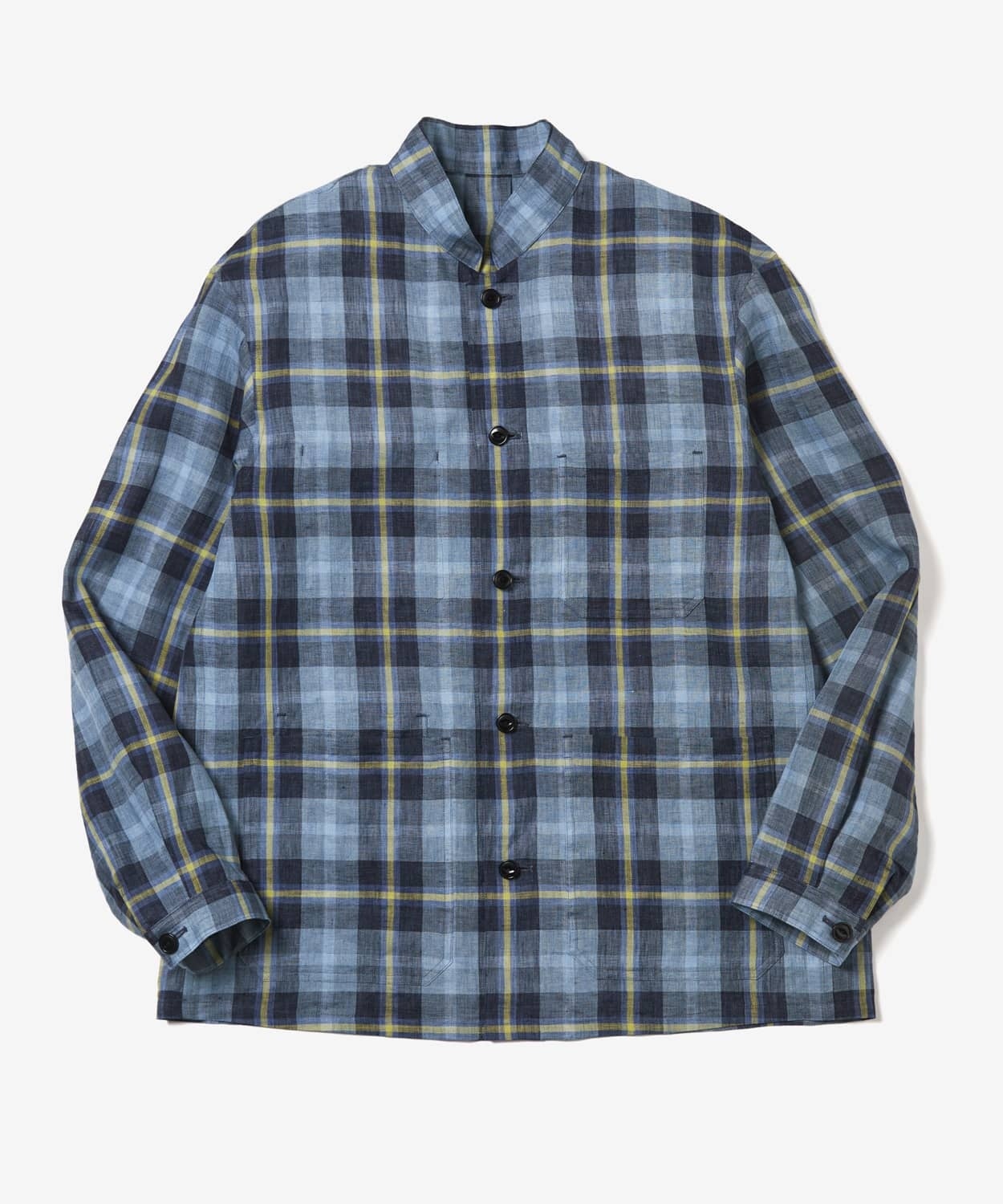 リネン素材を使ったチェック柄のシャケットは、オンラインショップ、青山本店、銀座店、渋谷店、大阪店の5店舗限定で展開。1876年創業の老舗高級ファブリックメーカー「アルビニ」社の高品質リネンを採用しています。細番手の糸を使用しているため、よりシャツらしい上質な見え感に加え、シワのある表情もサマになる、リネンならではの経年変化が味わえます。