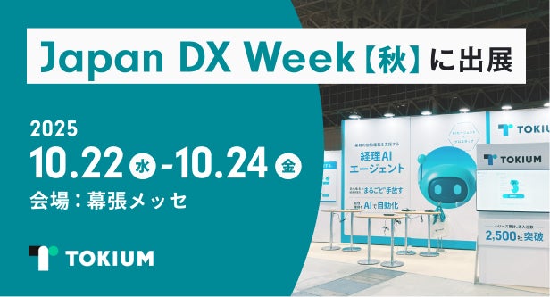 経理AIエージェントを提供する株式会社TOKIUM(本社:東京都中央区、代表取締役:黒﨑 賢一、以下「TOKIUM」)は、2025年10月22日から10月24日までの3日間、幕張メッセで開催されるJapan DX Week【秋】2025 内の「社内業務DX EXPO」と「AI業務自動化展」に出展いたします。