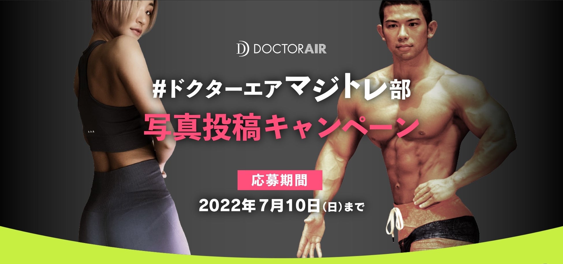 そこで 『ドクターエア』では、日々様々な誘惑に負けず、自分自身との戦いに励むトレーニーの皆さんを応援するべく、 「#ドクターエアマジトレ部」Instagram写真投稿キャンペーンを実施いたします!