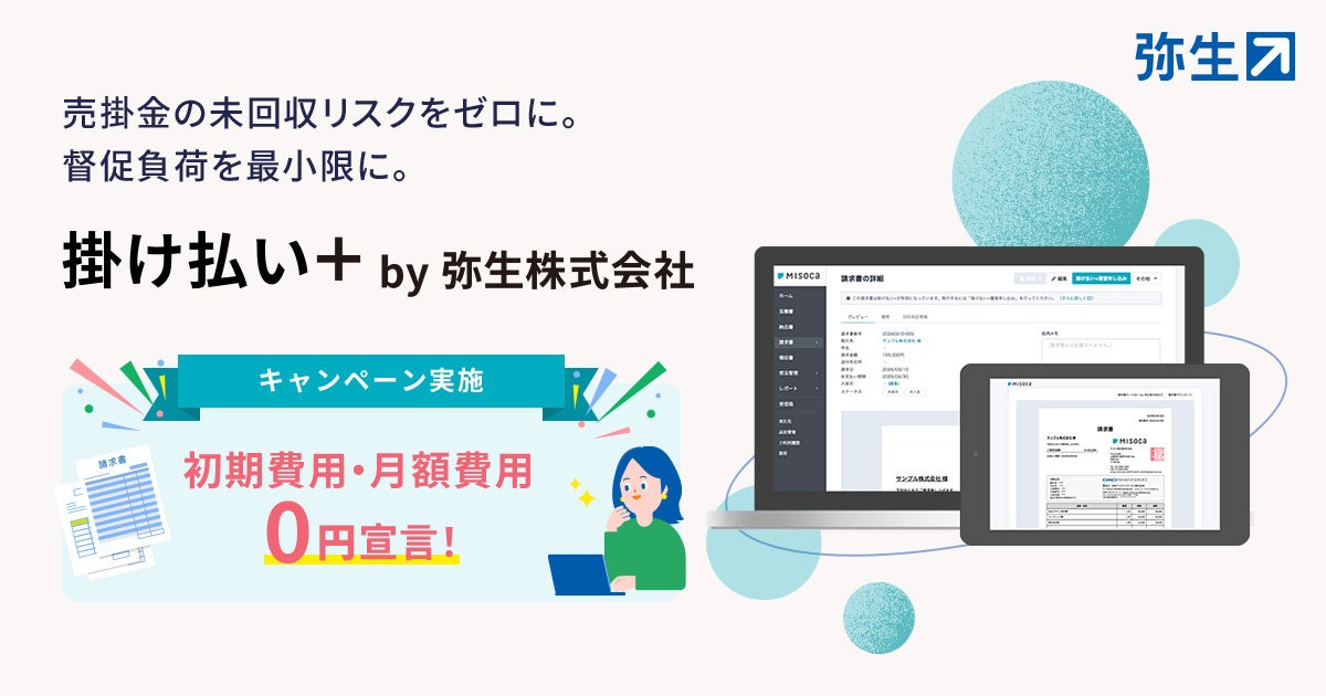 弥生株式会社(本社:東京都千代田区、代表取締役 社長執行役員 兼 CEO:武藤健一郎、以下「弥生」)は、提供するクラウド請求書作成ソフト「Misoca」と連携した掛け払いサービス「掛け払い+ by 弥生株式会社」を、2026年4月10日(金)より提供開始いたします。