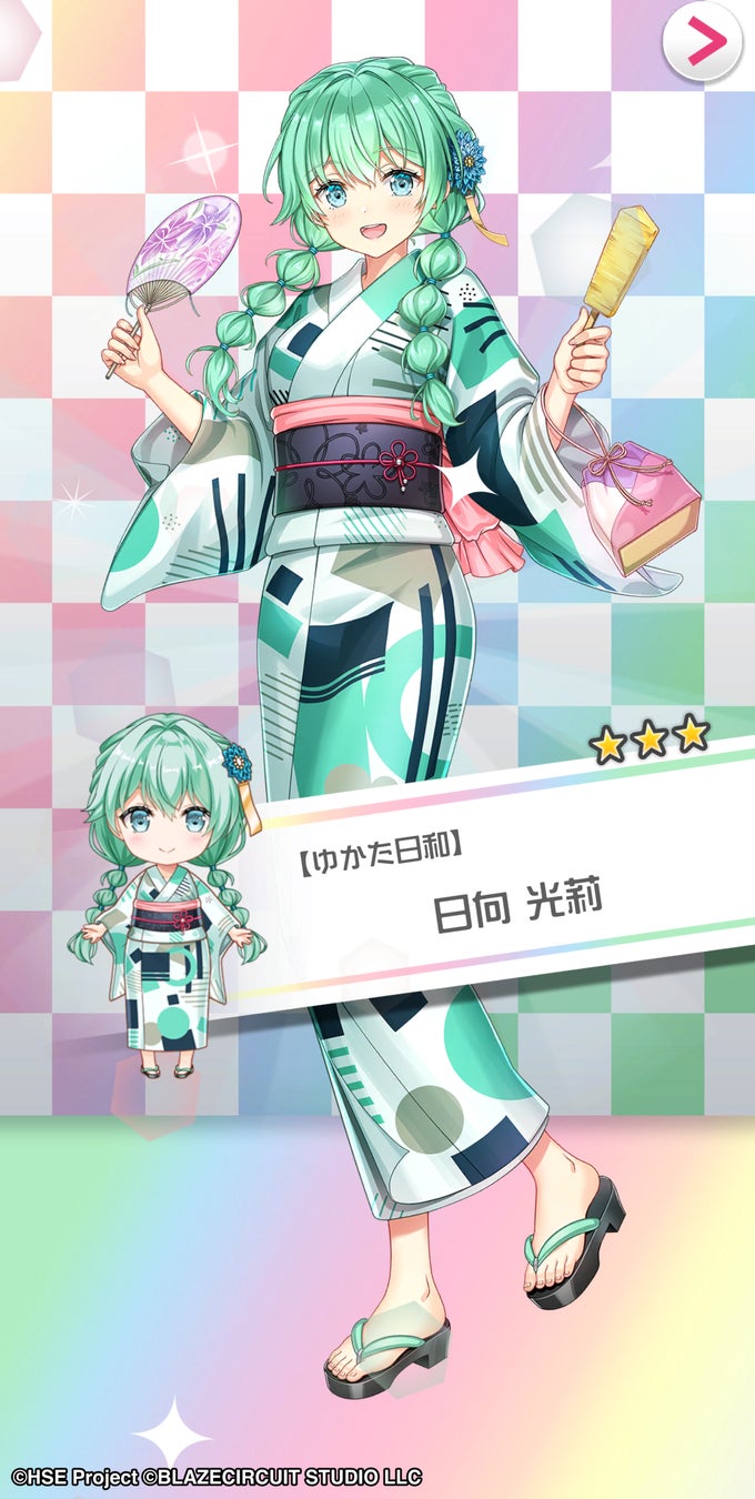 7月10日(木)12:00より開催いたします期間限定のスカウトでは、【ゆかた日和】日向 光莉が新衣装で登場します。期間限定での登場となっていますので、ぜひこの機会に入手してください!